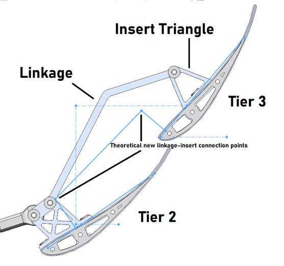 The first option considered to straighten the linkage is to move the linkage-insert connection point on the Tier 3 wing element forward to circumvent the problem of the linkage hitting the wing in the “low drag” position