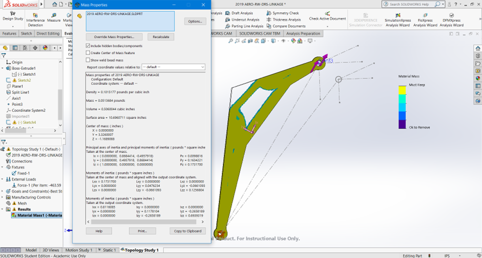 Since all loading is in plane with the linkage, a topological study was then conducted to minimize weight.