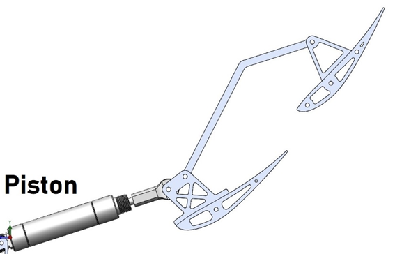The Tier 2 and 3 elements on the rear wings are moved by a piston between a “low drag” (as pictured in Fig 1.3) and “high downforce” (as pictured in Fig 1.1) position. They are attached by a linkage, that has proved to allow too much compliance. The goal of this project is to reduce compliance. Straightening the linkage will increase linkage stiffness.